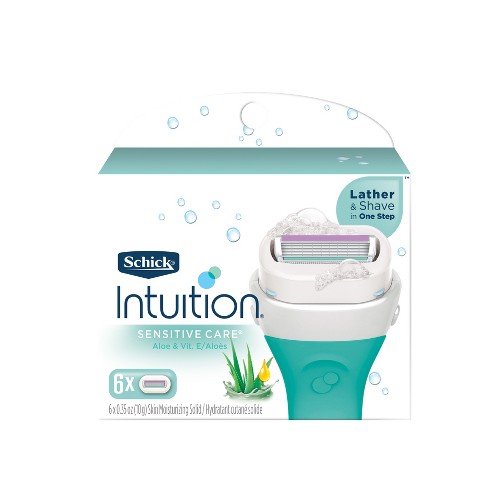 Lathers and moisturizes during shaving no need for soap, shave gel or body wash schick razor blades. Schick(r) intuition(r) for women put shave cream right on the razor.